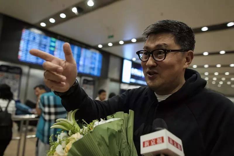 今日凌晨,达美航空DL129次航班抵京后,48岁的侯爽推着黑色行李箱,边与同机乘客打招呼,边走出边检出口。
