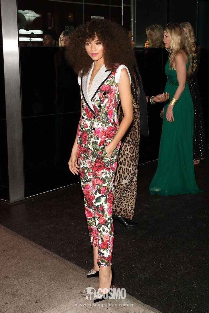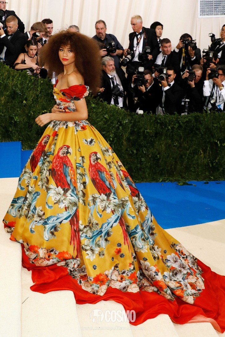 这样的惊喜也不是第一次了,几个月前的“时尚奥斯卡”Met Gala上,Zendaya用一袭Dolce & Gabbana定制礼服秒杀菲林。这条礼服是非常典型的公主裙设计,但她却出其不意的用爆炸头作为搭配,展现异域风情的同时也传递出了意式浪漫的热情。