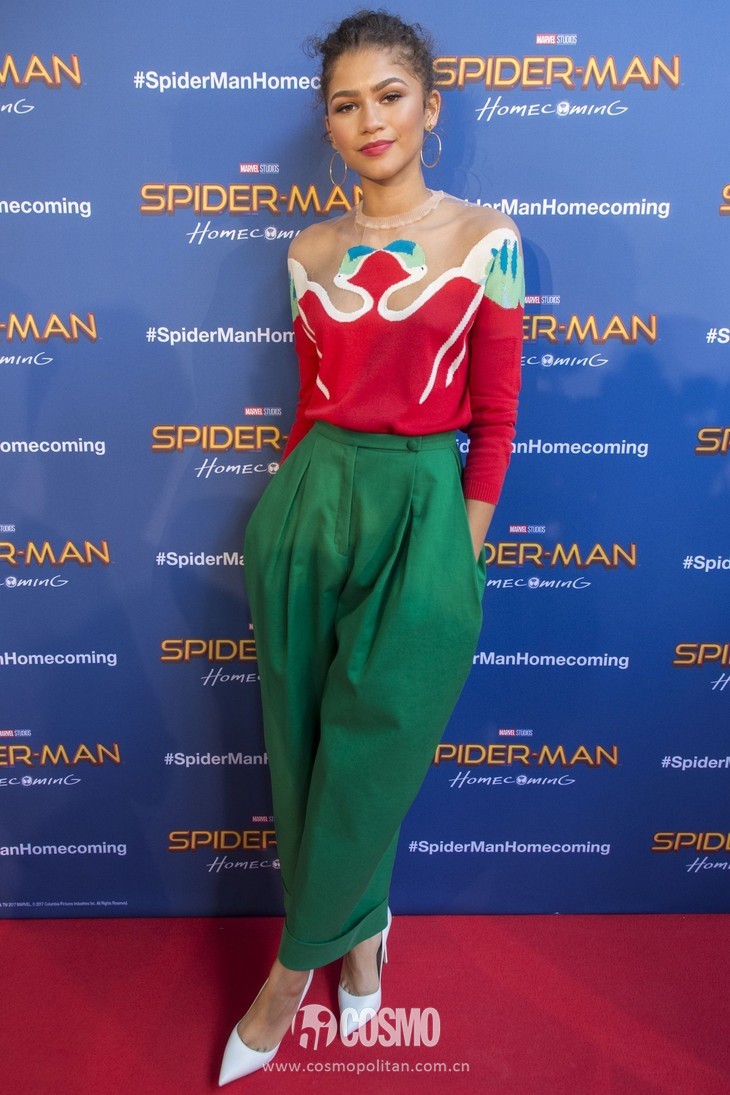 另外两场宣传活动,Zendaya更加大胆,全部是撞色搭配!蓝黄、红绿的复古撞色其实很难驾驭,再加上Zendaya本身是黑皮肤的原因,气质不好容易显土气,不过作为“气质95后”,她根本没在怕!