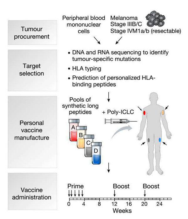 研究人员在对患者肿瘤细胞和正常细胞进行深度测序的基础上,找出肿瘤细胞中独有的突变基因,将这些基因制成了最终的疫苗。