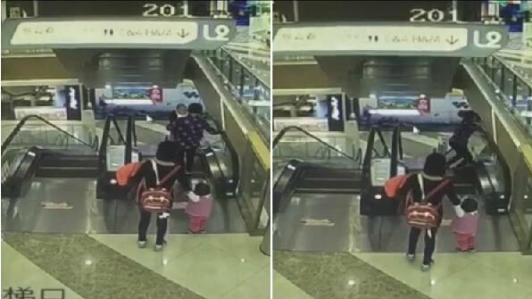老人乘扶梯不慎失控脱手 男婴坠亡