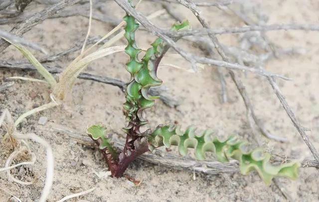 Trachyandra tortilis是一种T属弹簧草,即阿福花科Asphodelaceae、粗蕊百合属。该种还没中文名,这种海带一样的异域植物生长在南非,宽大的叶子烫着大波浪卷,随着季节变换还能呈现出炫目的粉红色,非常时髦有木有。
