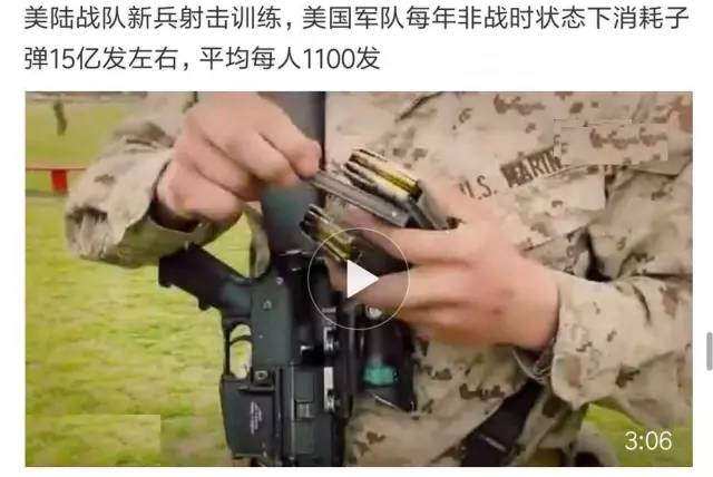 还有网友把美国军队的子弹消耗量发布出来作为对比,声称美军有140万军队,每年训练消耗的子弹高达15亿发左右,平均每人1100发。渲染美军有“hose it down”——“用子弹橡皮水管浇它”的俚语。