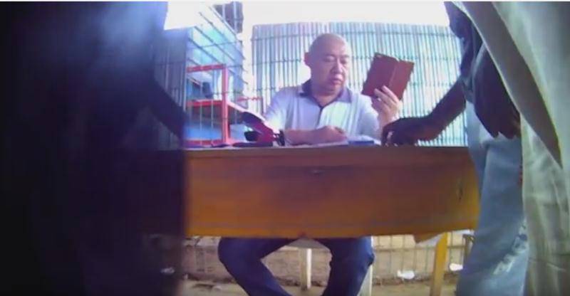 当地“蒋志仓库”的管理员朱春友是这起事件的重要当事人,按他的说法,他莫名其妙就“被采访了”。在英媒拍摄的6分18秒视频里,朱春友出现了6秒钟,有两个镜头,一个是他在收矿,填写单据;一个是他在玩手机