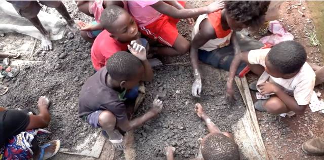 他们蹲在地上,用脏兮兮的小手筛选矿石……像他们这样的“童工”没有鞋,没有任何保护措施,最小的4岁