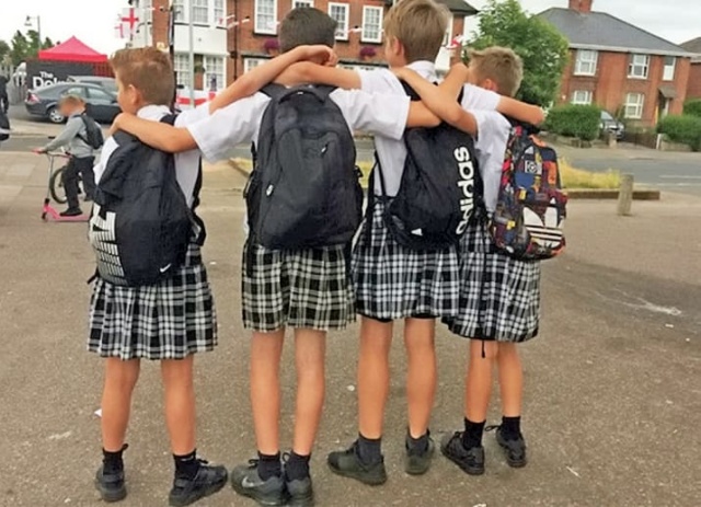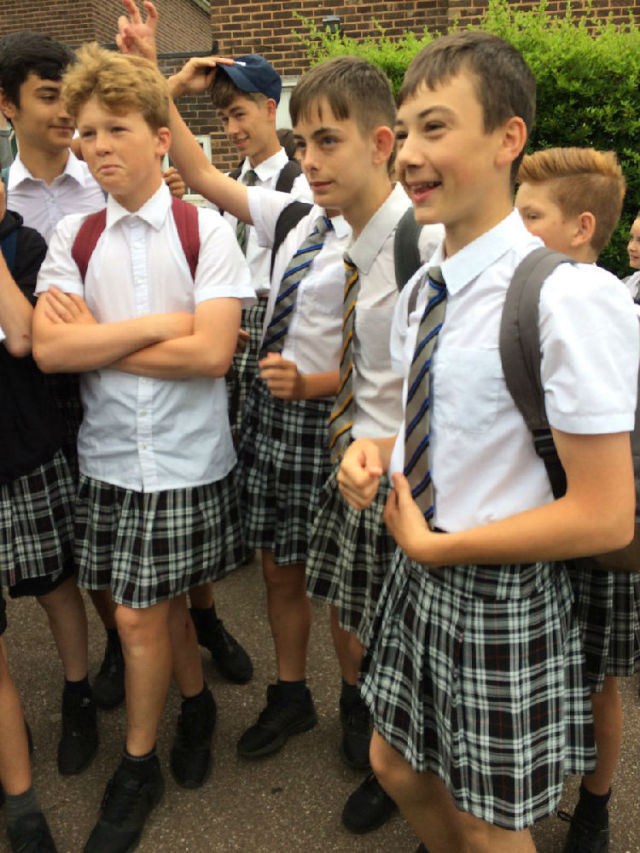 英国学校禁止男生穿短裤,于是……他们换上了短裙
