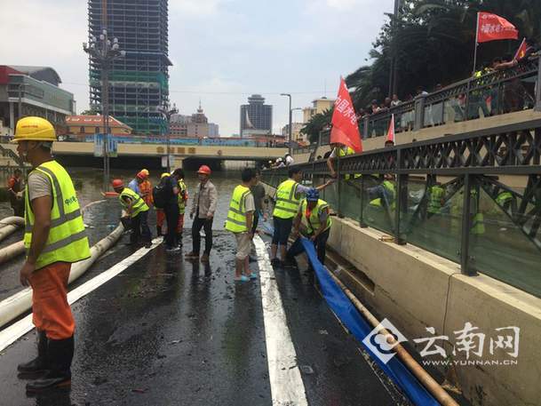 目前,北站隧道抽排水量达到每小时1万立方米,水位以每小时20厘米的速度下降,北站隧道积水水位下降1米。昆明排水公司总经理曾平华告诉记者,根据目前处置能力,在不增加水量的情况下,预计下午3时能处置完毕。排水工作结束后,还需清理隧道内路面淤泥,所以交通何时能恢复暂时不能确定。