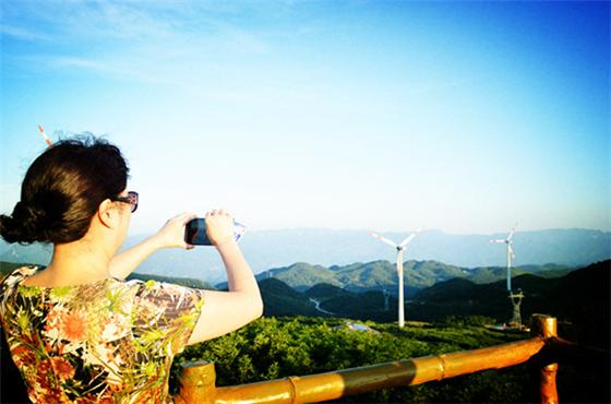 华龙网7月27日6时讯(通讯员 张凯伦)近日,笔者在位于海拔1700多米的重庆武隆区和顺镇弹子山寺院坪风电场上看到,许多来武游客一边陶醉美丽神奇寺院坪风车风情美景,一边情不自禁地拿出相机、手机摄影留念,记录下身临其境的美景。