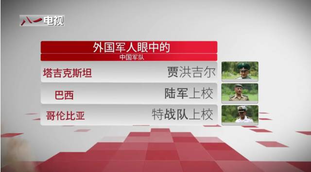 在中国人民解放军成立90周年之际,来自巴西、哥伦比亚、哈萨克斯坦、塔吉克斯坦、亚美尼亚等国的军人通过中国军网八一电视的镜头,表达了他们对中国军队的了解和对中国军人的祝福。