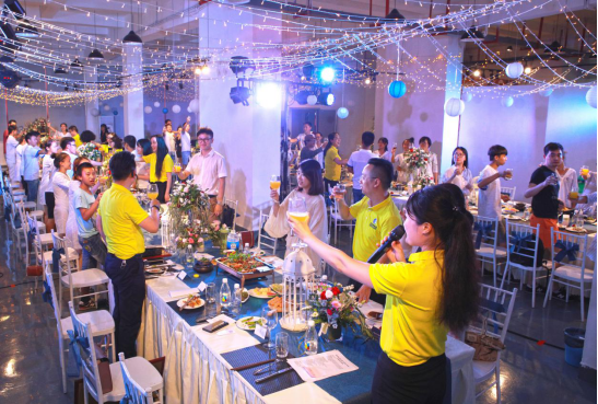 在“红房子”喵空间展览厅,来自喵村的爱心企业们用鲜花和彩灯精心装饰活动现场,来自各行业的企业家、摄影师、记者、媒体人、作家和50名梦想学子共同品尝喵村提供的“爱心牛排”和重庆海鲜麻辣锅长桌宴,孩子们脸上洋溢开心幸福的笑容,与公益人士们畅谈人生梦想,并现场用一首首积极向上的歌曲和诗朗诵回报社会的关心和爱。