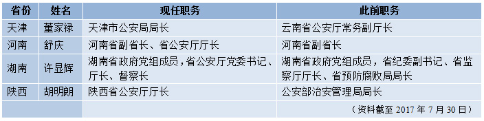 表二:四省(市)公安厅(局)长调整一览: