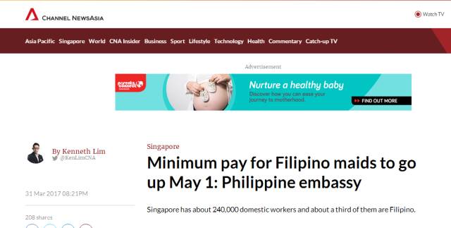 《亚洲新闻台》今年5月的一篇报道指出,新加坡有大约24万家庭佣工,约7万是菲律宾人。