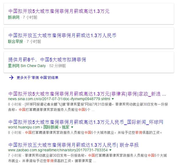 同处东南亚的新加坡也是菲佣主要流入地。