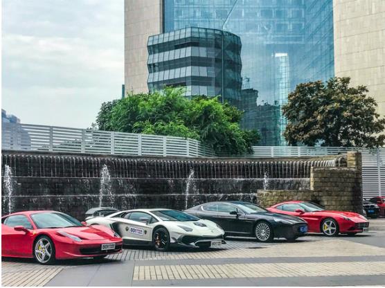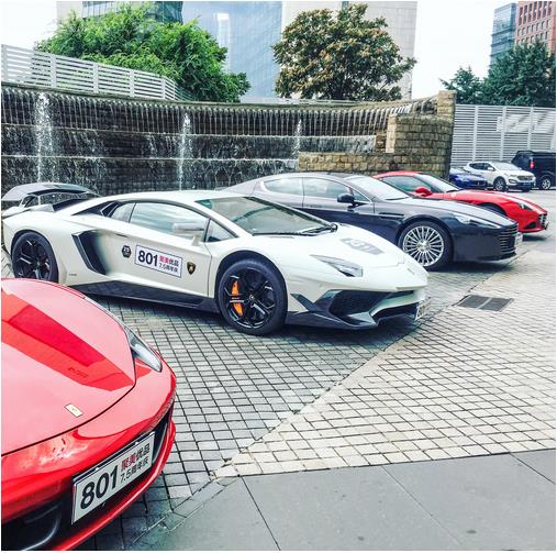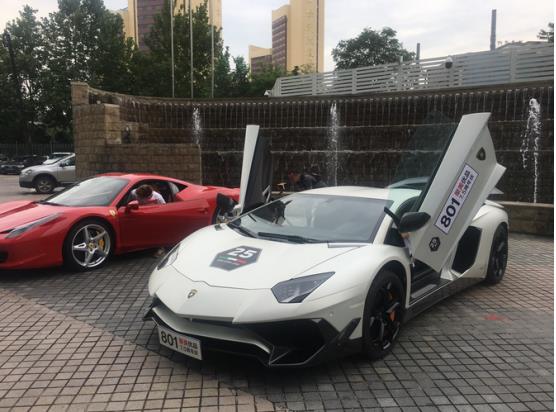 801一大早,聚美优品公司所在地——中汇广场楼下停放了一排豪华超跑,车身贴有聚美801LOGO,十分抢眼和拉风。