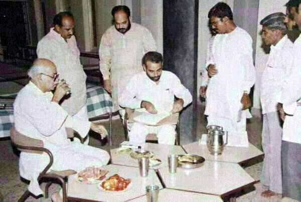 左侧饮茶者为党领袖阿德瓦尼,莫迪实际已处于决策中心