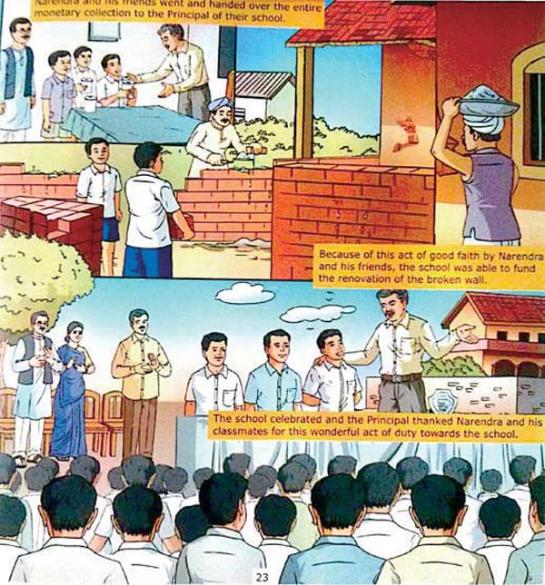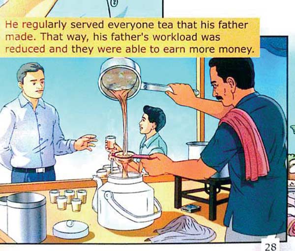 在很多印度人心中,他们的总理莫迪如神一样地存在。他从茶水小伙到印度总理的故事在民间广为传送。然而,他的童年故事远不止为军队送茶水,还文能刻苦读书、武能做体育健将、树上救小鸟、水中捉鳄鱼……完美得如同那几位金将军。这就是人民党宣传机器推出的漫画《莫迪的童年故事》。现在,小莫迪如何不惜成本卖好茶的鸡汤文也传到了中国。