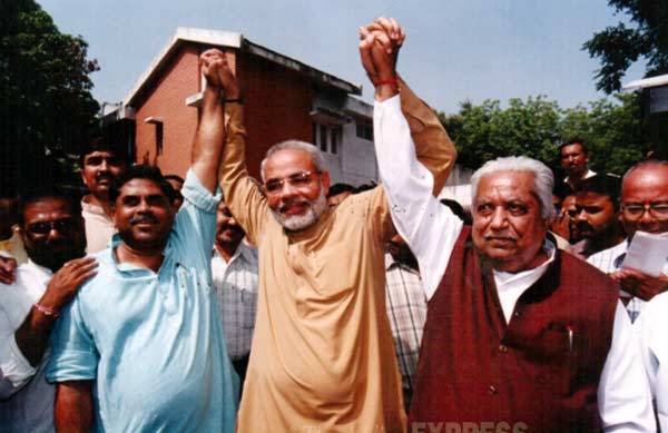 莫迪从很不情愿的前首席部长Keshubhai Patel手中接过权力