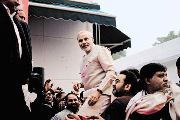 在他政治生涯之初,莫迪曾在多次公开演讲中煽动印度教徒反对穆斯林。他还宣誓终身投身组织事业,如苦行僧一般,素食、不沾烟酒,禁欲、终身不娶。