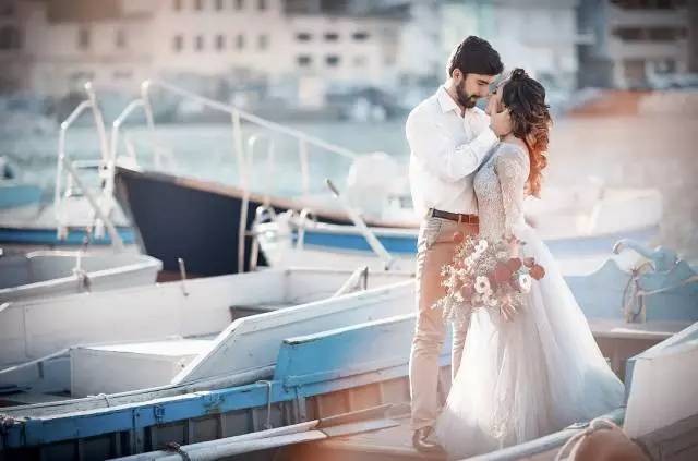 👆这张,情侣经典pose,虚化背景,强调两个人物,从容优雅。