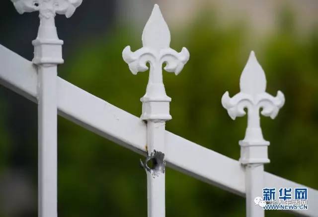 枪击现场,弹痕累累。
