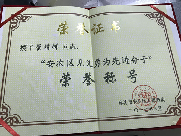 河北廊坊的安次区地处廊坊市区南部,在战国时期属于燕国领地。唐代韩愈曾在《送东阳马生序》中写过,“燕赵多有感慨悲歌之士。”崔全政说,父亲崔靖祥就是典型的燕赵人,“如果在古代,他应该能当个侠士。”