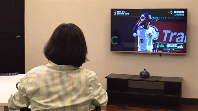 台湾地区领导人蔡英文日前在脸书上贴出了一张自己穿着长袖,在电视机前观看球赛的照片。(图片来源:台湾《中时电子报》)
