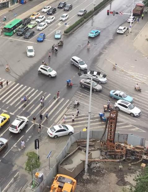 “这里不像个路口,反倒像个集市。”市民张先生每天经过此路口,每天早晚高峰,行人、自行车、电动车横穿马路,与机动车抢行的现象特别严重。深感此处交通乱象颇为顽固,他便留言反映,建议能在此处修建人行天桥,实现人车分流。