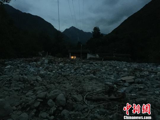 8月10日晚,夜幕降临,姚世梅夫妇从安置帐篷里回家拿衣物。他们家的房子在泥石流冲刷过的废墟旁,孤零零的亮着一盏灯,很快就灭了,他们说,再也不敢搬回家住了。 南如卓玛摄