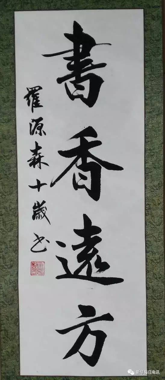 在别人还在看图认字的年纪,4岁的罗源森已经开始了他的书法之旅。