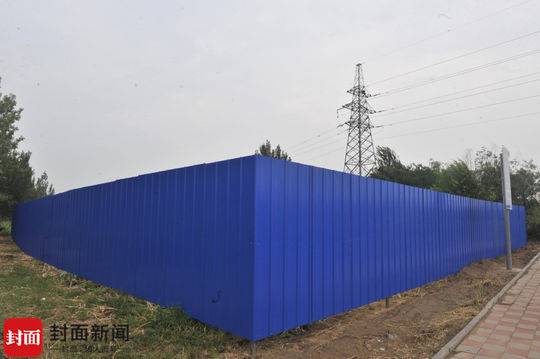 车从北外环还没完全左转驶上西外环,宽阔马路边,即有一堵蓝色围墙进入眼帘。