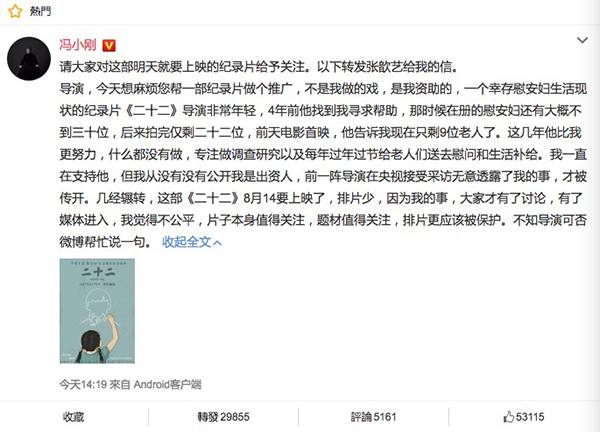 也是在8月14日,我国首部获得公映许可的“慰安妇”题材纪录电影《二十二》正式公映。
