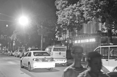 只要有车辆掠过路面“电子拍摄线”,摄像头就开始工作,“咔咔”拍照。在强光灯的映射下,闪光灯耀眼无比。如果过往车辆密集,便一直爆闪。