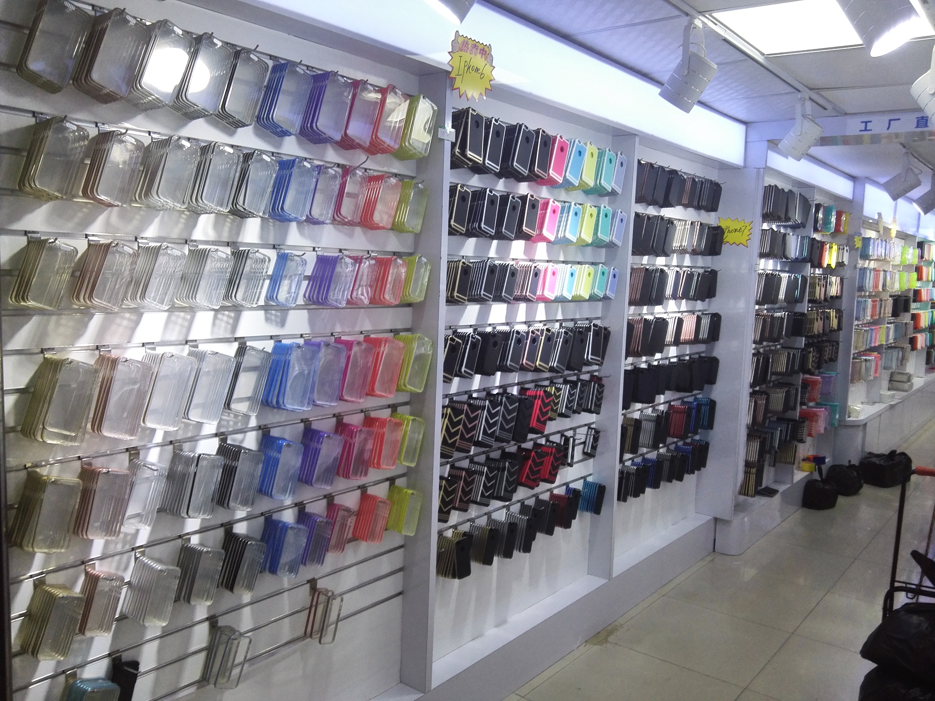 相对于华强电子世界来说,华强北赛格通信市场、龙胜配件市场主要专注手机配件的零售批发。而振中路的龙生配件市场里,则可以看到各种琳琅满目的手机配件:手机壳、耳机、彩膜等等应有尽有,其中以经营手机壳的商家数量最多。