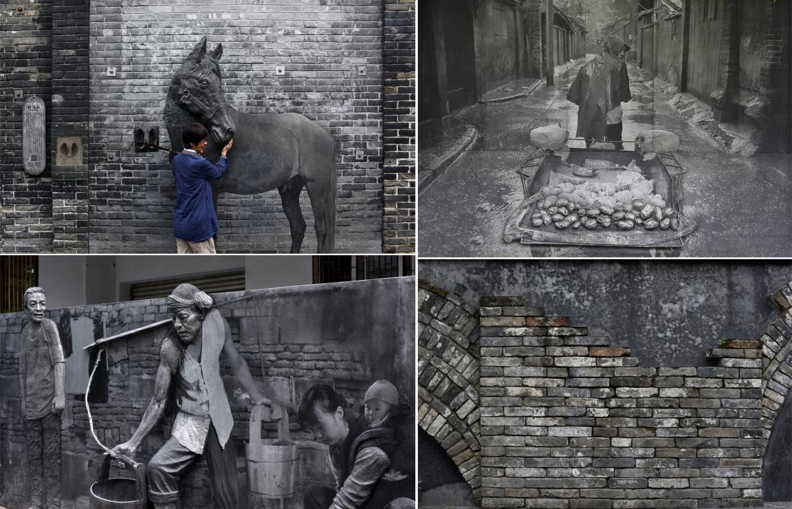 分为:景观互动化、老材料装置化、材料科技化。井巷子中设计了一些互动的细节,以往的老菜民骑着三轮车、拴马桩等等互动景观做得不错,即景观互动化;还保留了以前一部分老砖墙,砖、石头、甚至一些小物件,成为承载记忆的点,为老材料装置化。