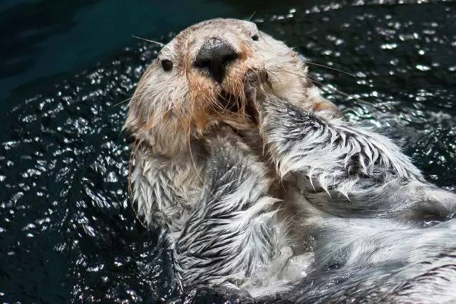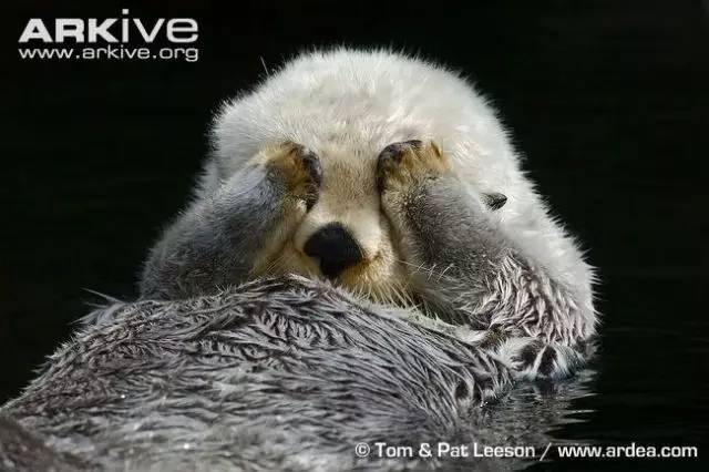 同时,成年的海獭会将分泌的油脂精心涂抹在自己的毛发之上,使毛发获得更好的防水性能。这一身的皮毛是海獭能够轻松以仰泳姿势漂浮在海面上的一个重要原因(不是因为胖……)。