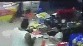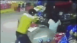 潘紫莹站在收银台里,整个抢劫案发过程96秒。