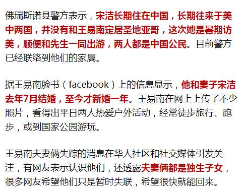 原标题:中国夫妇在美失踪超过一周 搜救仍在进行
