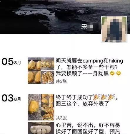 宋老师的朋友圈截图,最新的一条朋友圈更新于8月5日,她还在为第二天的徒步准备干粮。