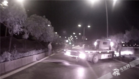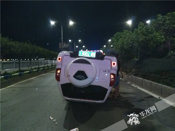 凌晨1时30分左右,重庆市公安局沙坪坝区分局交巡警支队接到报警,称一辆轿车在该区沙滨路金沙港湾路段侧翻。闻讯之后,民警第一时间赶到了现场。