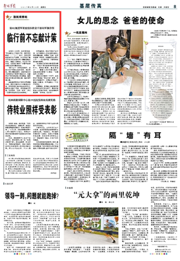 向军旗告别,转业干部有千言万语,但大家最关心的还是部队建设。刚刚调整组建,有哪些“旧账”还没有理清?转型后,抓建基层该从哪儿入手?……仪式展开前,大家纷纷给旅队献计献策。请关注今日出版的《解放军报》的详细报道——