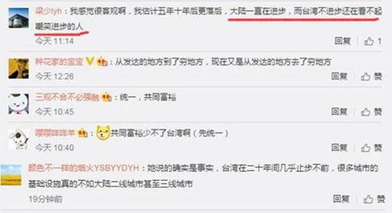 以上是“自己不进步”,更可气的是:台湾看不起大陆的进步!