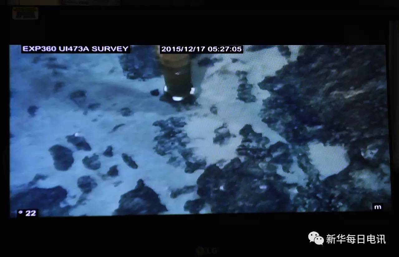 2015年12月17日,“决心”号水下摄像机拍摄的700多米深的西南印度洋中脊海底景象。