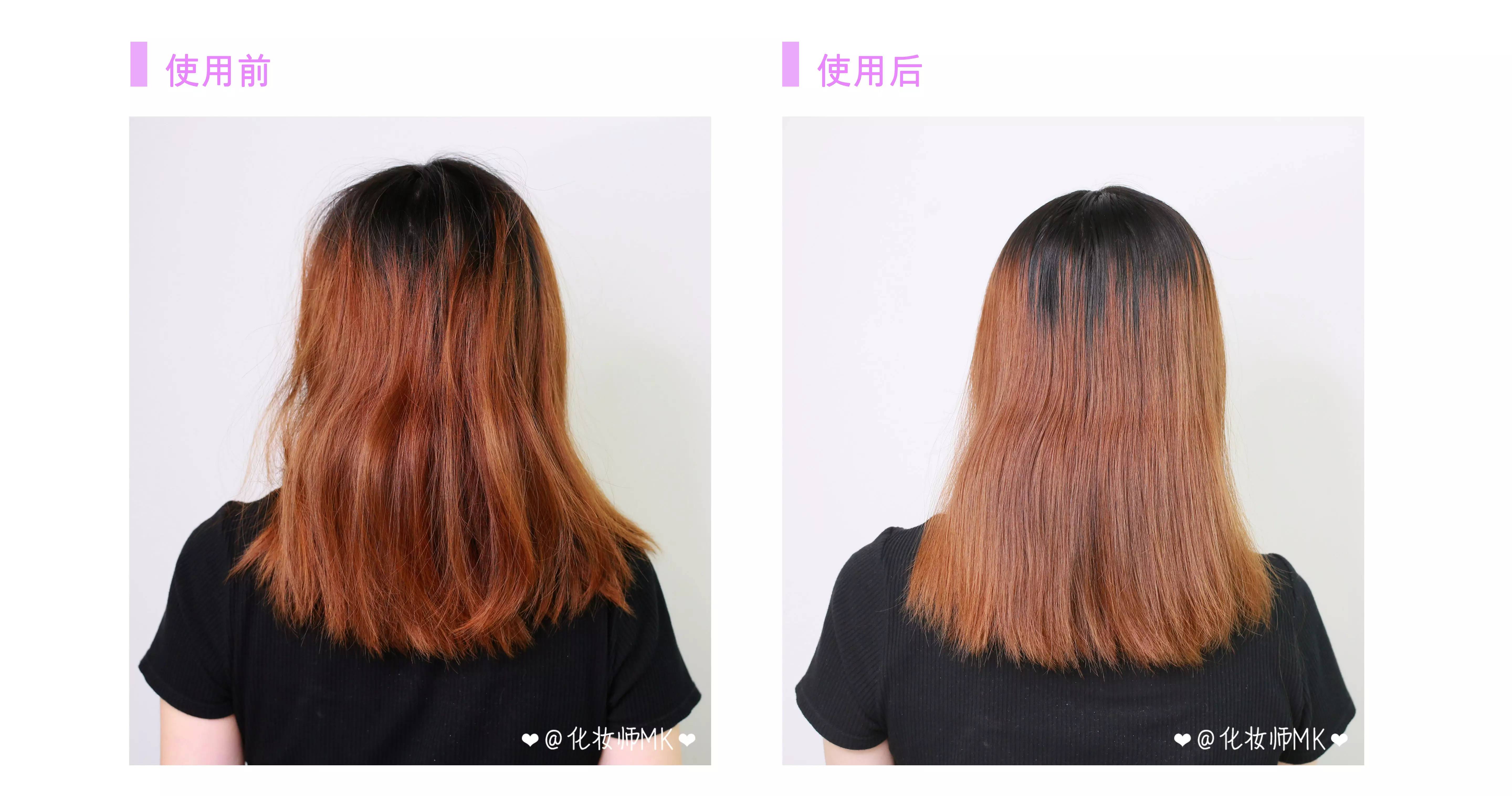 用完后明显看到光泽度上升了几个level,仿佛天生就是那么柔顺~滋养度是7款里面最丰富的,效果立竿见影那种,发梢的位置分叉都没了,很适合烫染过度、受损严重的发质。