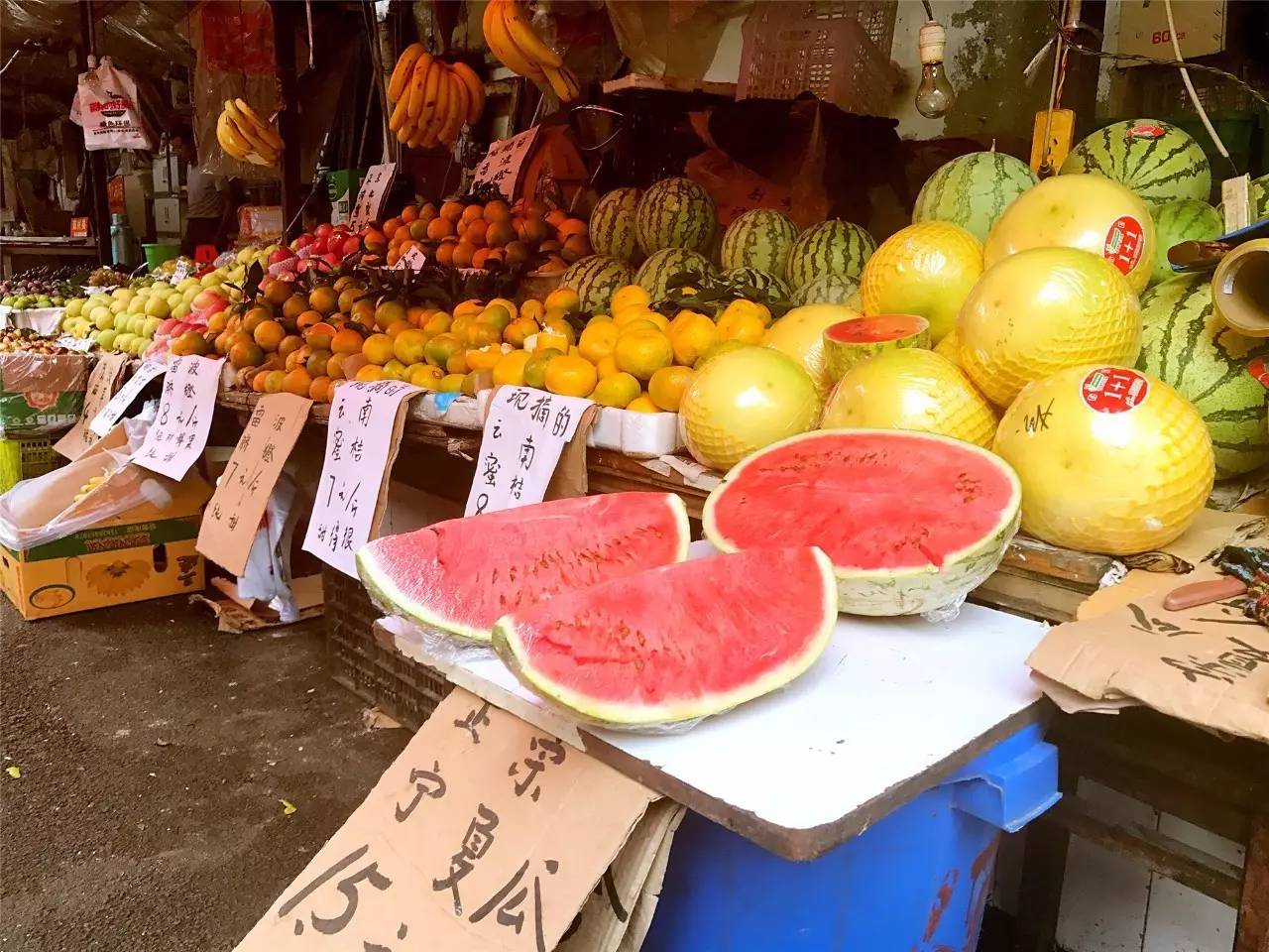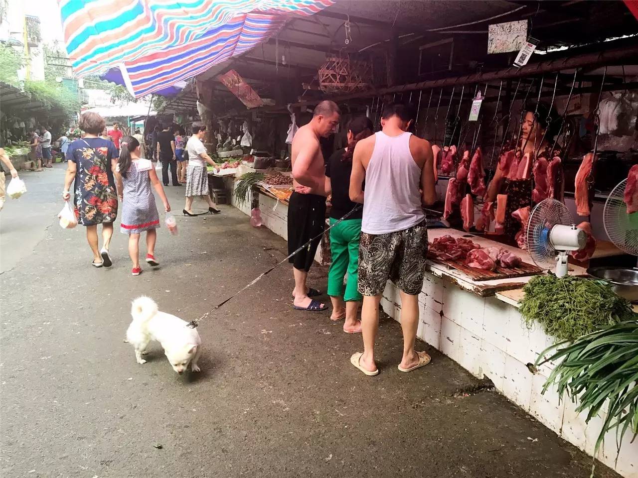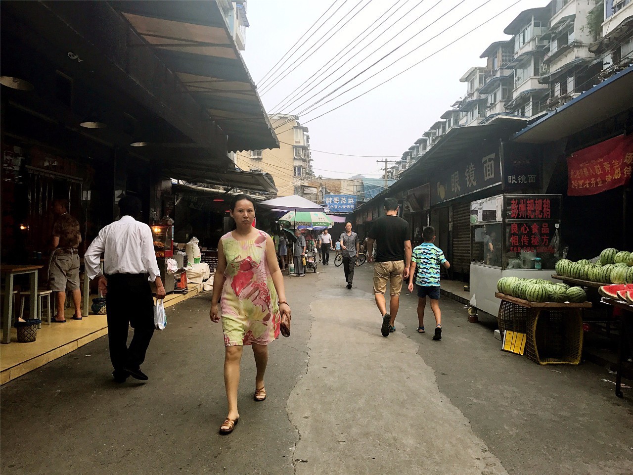 午觉醒来的人骑着车,或者穿着背心人字拖,慢悠悠地挑选自己中意的菜,肉和瓜果。
