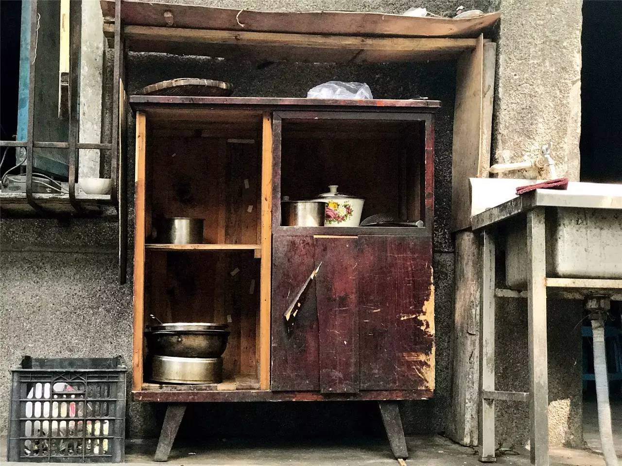开得热烈的花,翠绿的芭蕉叶子突破了围墙,小店门口摆放着偷油婆色的碗柜,插销残破了还是好看。