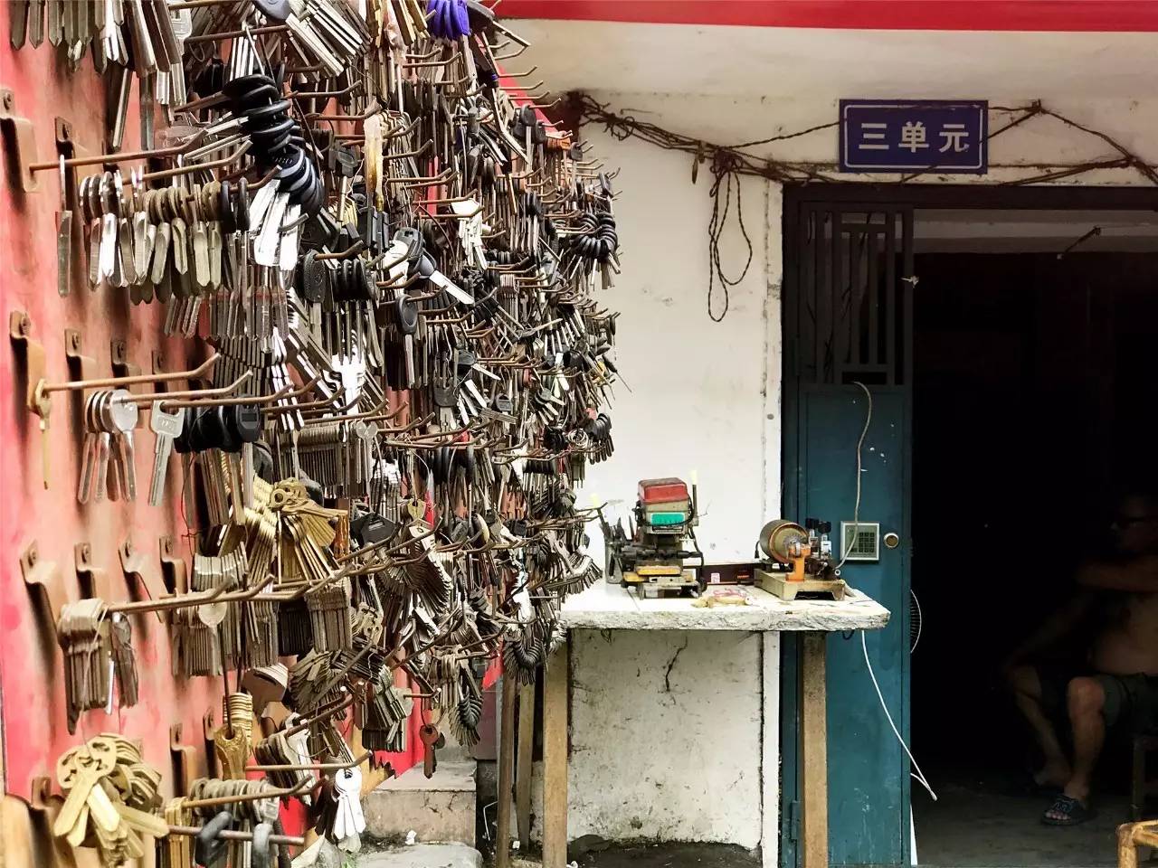 老小区附近,最多的是锁店,黄铜合金的钥匙,造型古朴一看就是老款,秘密麻麻地挂在一堆。