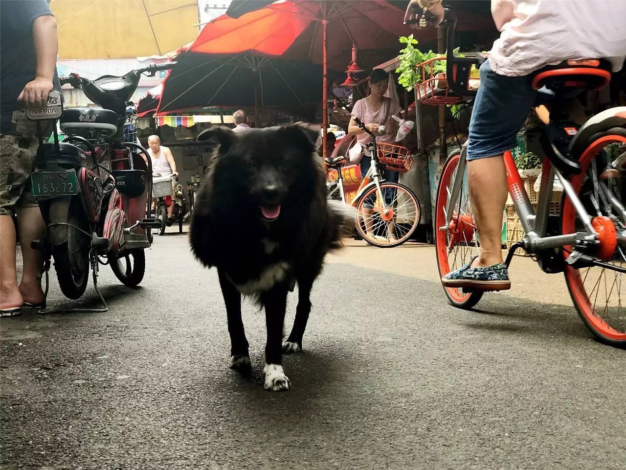 市场上那只奶水丰盈的大黑狗开始来回走动,总有人要给它肉吃,像是个明星。