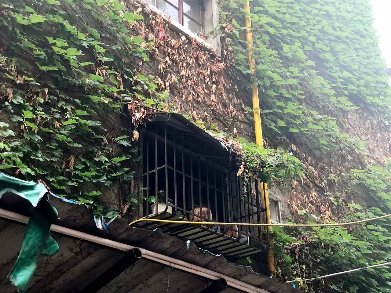 砂浆水泥的墙面,灰暗,粗糙。幸好爬山虎喜欢,上墙成了最自然的装饰。