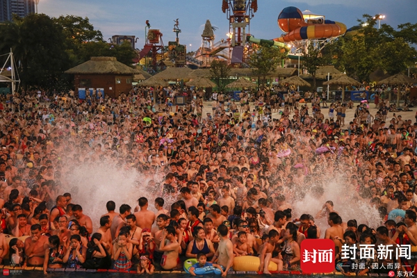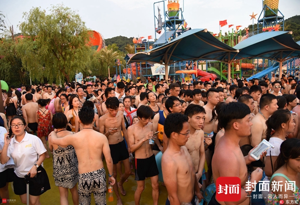 2017年7月16日,自入伏以来,江城武汉气温节节攀升,跑步进入酷暑期,7月15日更是迎来36°高温。高温持续烧烤下,市民纷纷选择戏水消暑。武汉一著名水上乐园门前人满为患,园方统计,当日当场人数达到3万人。每天晚上7点半,这里还有电音party上演,人们开始躁动。