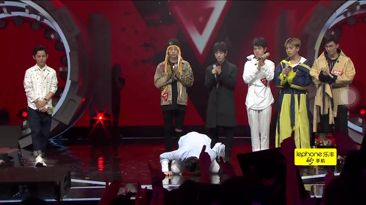 王广允双膝跪下亲吻舞台